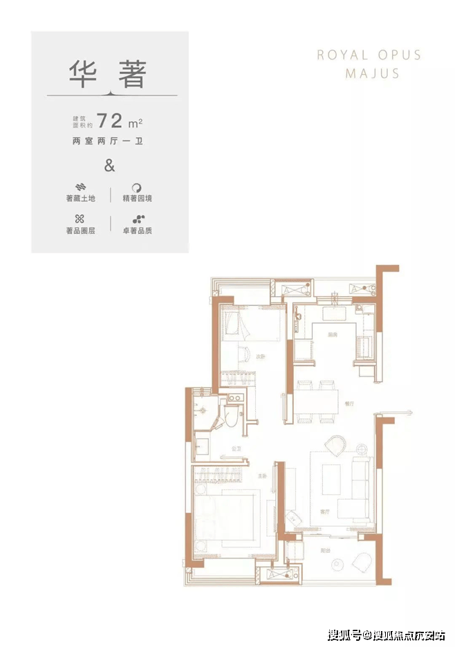 建面约72m²的两室两厅一卫设计,大大降低了置业门槛,对于刚需置业者也是非常友好的一个价格。户型方面,南北通透,居住舒适。两开间朝南,全明设计,采光面广。