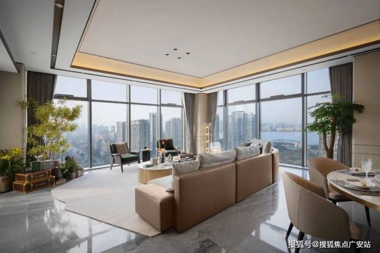 比如,它在视线齐高处,采用约2.3×1.5米的超大幅钢化中空玻璃,不仅最大限度地表现江景之美,建筑立面也更凝练大气。一般大平层低处的琐碎气窗,全部移至顶部。