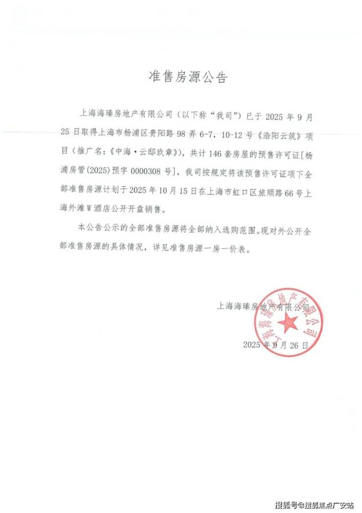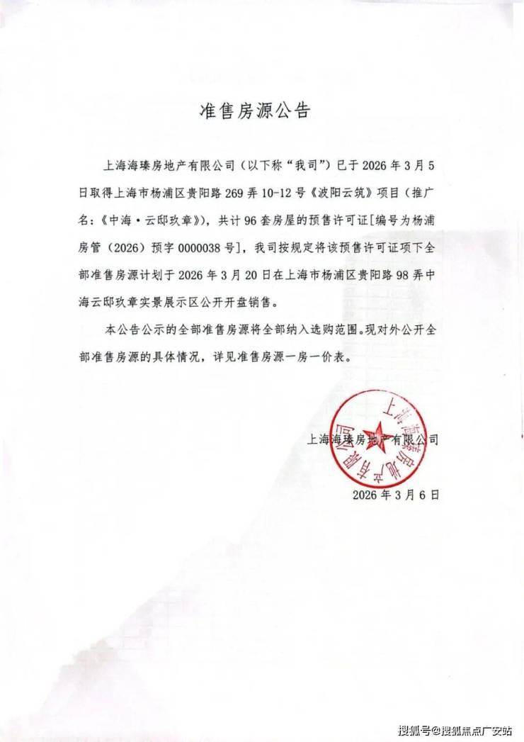 为保障购房者权益,规避非官方渠道误导,现将中海云邸玖章2026年3月28日最新官方信息公示如下,敬请认准: