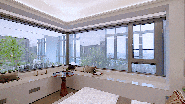 该户型“不计入面积”的惊喜空间约27~29㎡,全屋足足8个飘窗,进一步拓展了室内空间,同时让更多的房间能够沐浴在阳光之下,为居者带来了更好的观景体验,尤其是主卧270度的转角飘窗,窗外的风景仿佛一幅画卷,随时展现在眼前。