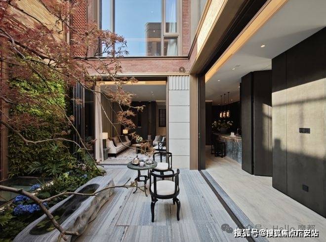 在稀贵的场地内,项目在空间规划时选择主动拔掉一栋楼来造园,作为整个项目透气的“眼”;在此基础上,又往下深挖三层,创造出空间丰富的垂直山水庭院,围绕这个庭院又布置了层层递进的配套会所体系,打造出繁华闹市中的桃花源。