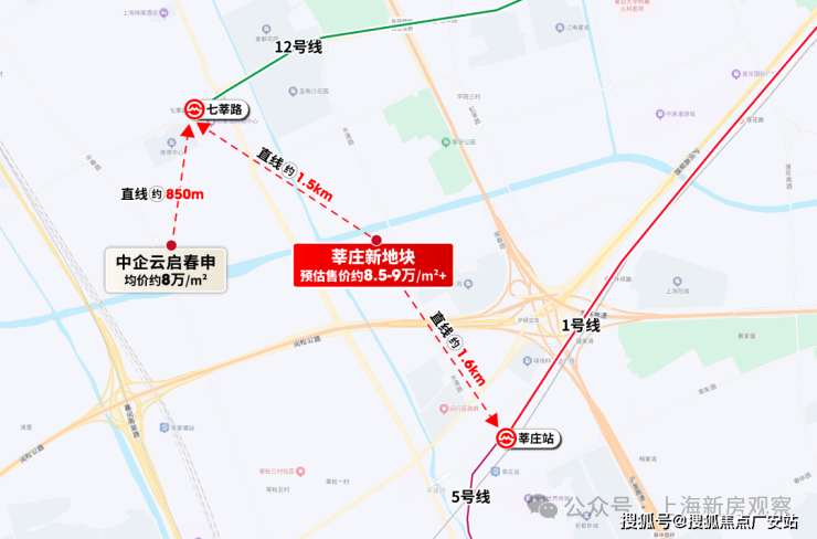 莘庄板块近两年只有保利建工海玥锦上、中企云启春申两个新盘,均在莘庄商务区,售价在8万左右。