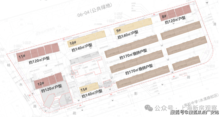 高层楼栋部分首层架空设计,值得注意的是12-1#楼的1-2层为居委会、养老服务等社区配套,未来定价或许会低一点。多层住宅分布在整个社区的东南角,预计均为叠加类产品。