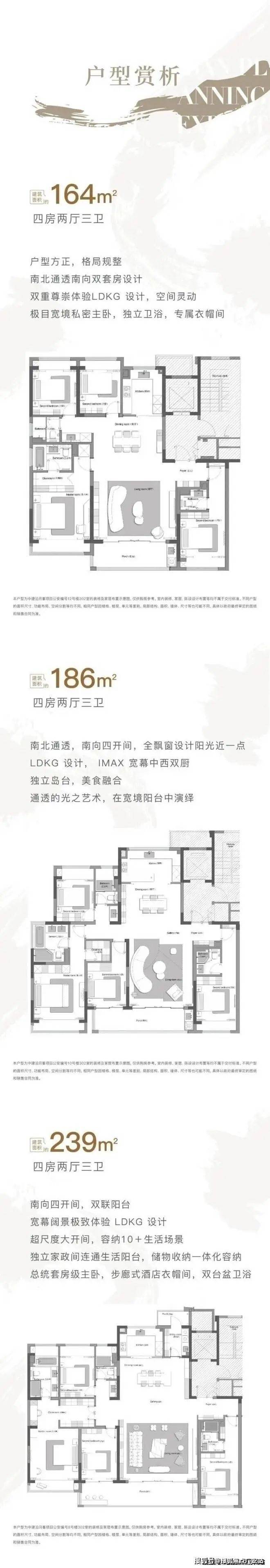 作为板块内唯一新房。项目打造12栋小高层住宅,户型建面约164/186/239㎡三种户型,三种户型,统统是双套房设计,妥妥的改善大平层。