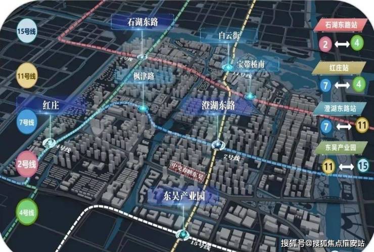 5条轨交形成4大交汇点:东吴产业园站、红庄站、澄湖东路站、石湖东路站。