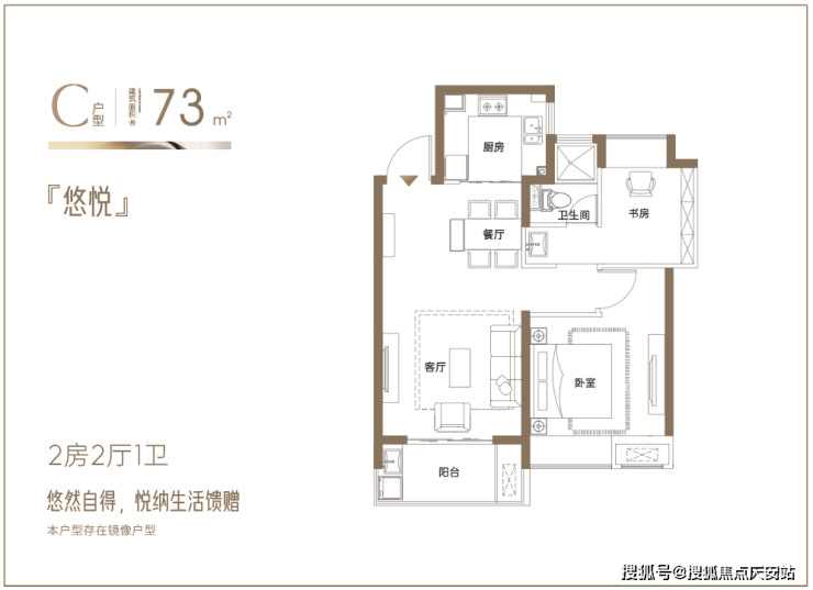 建面约73㎡悠然两房:悦纳生活馈赠