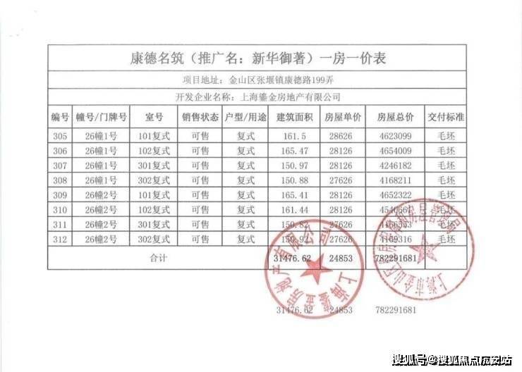一房一价表如下:
