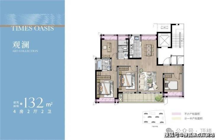 主力户型:建面约132㎡四房两厅两卫,该户型四开间朝南,近14米超大面宽,独立电梯厅,U型厨房,开间超7米广角阳台,卧室全飘窗,主卧为轩敞套房,自带独立卫浴、衣帽间。
