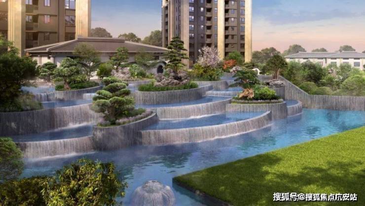 社区内部植被丰富,设置众多艺术雕塑、景观休闲步道、中央景观层叠式水瀑布、儿童游乐场等。
