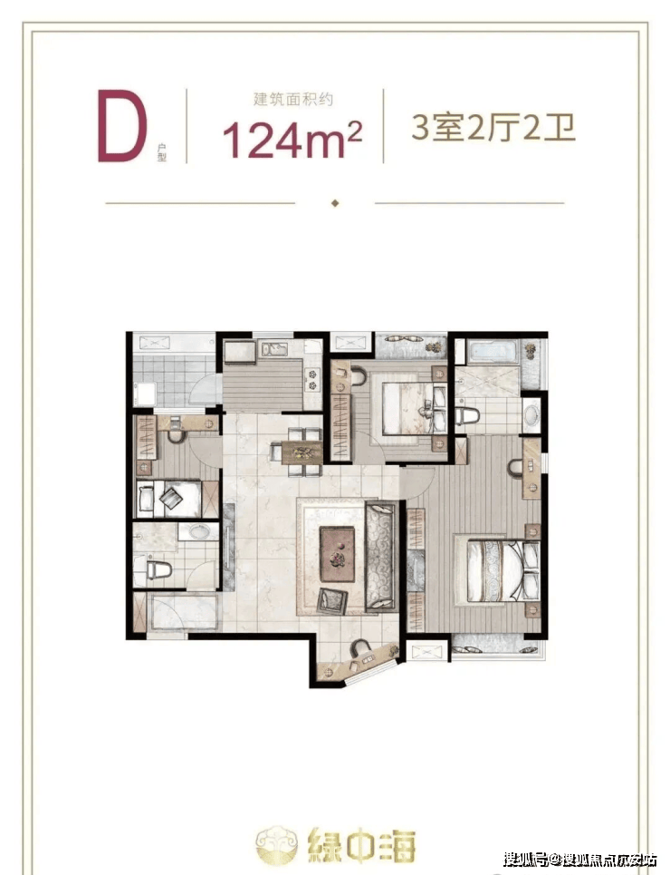 建面约124㎡3房2厅2卫
