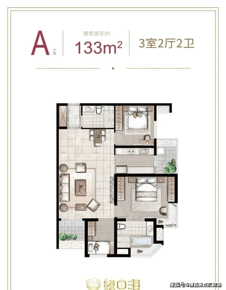 建面约133㎡3房2厅2卫