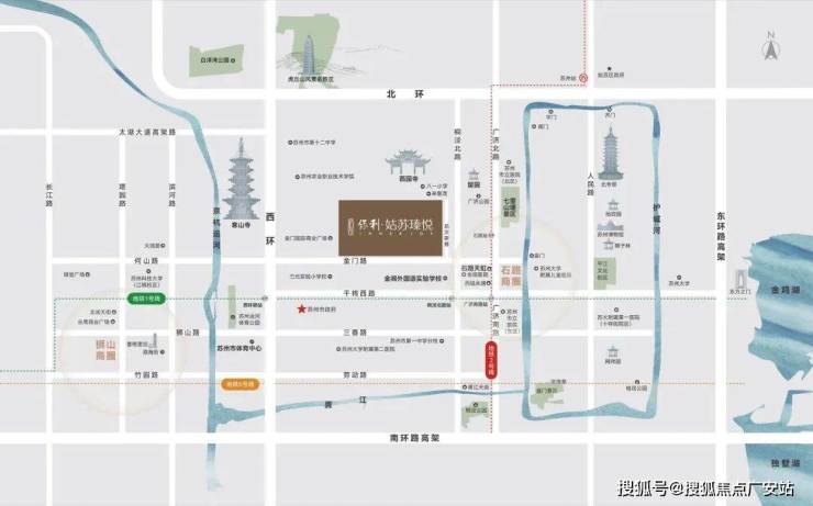 项目坐拥古城核心,距离苏州市政府仅1公里,拥享全套市政便民配套。同时项目距离留园约 900 米、西园寺约700 米、寒山寺约 1500 米……各类文脉地标群环伺左右。