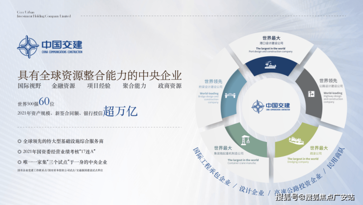 中交城投是中国领先、世界一流的城市发展商!履迹遍布9省19城,缔造超60个精品开发项目,中交城市投资控股有限公司是中交集团“全面深化政企合作、以城市综合开发运营为核心业务”的千亿级专业化投资平台,是中交集团“着力深化改革,推进业务整合“的重要举措。