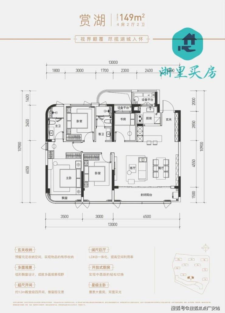 阔尺开间四开间朝南设计,超前理念阳光平权