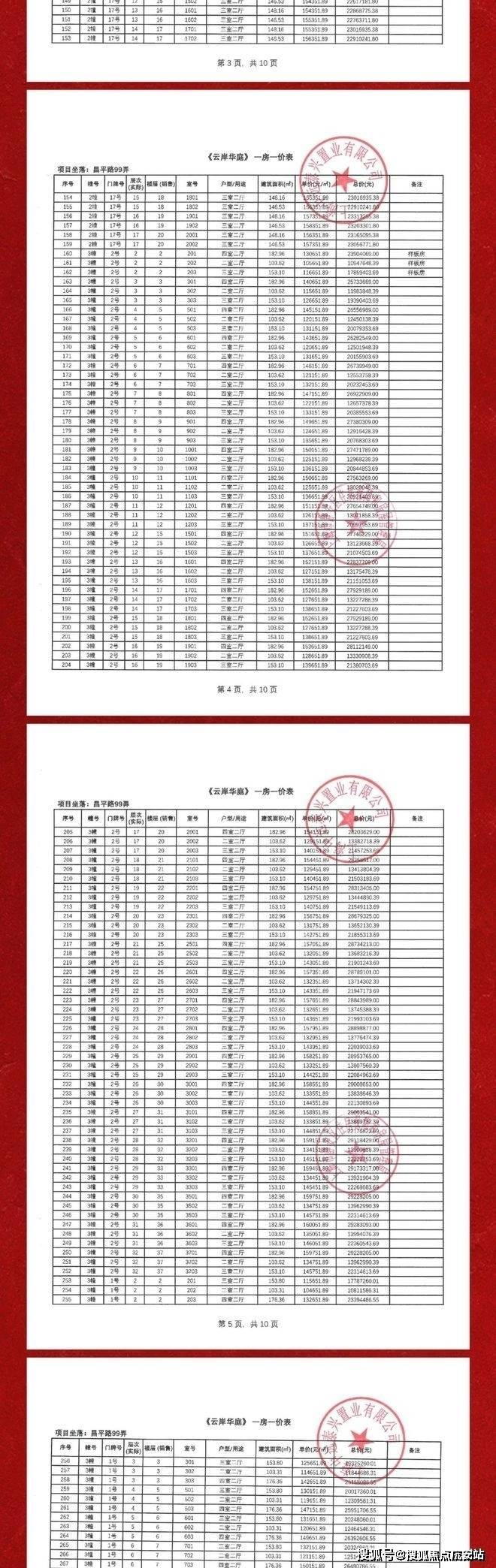 一房一价表如下