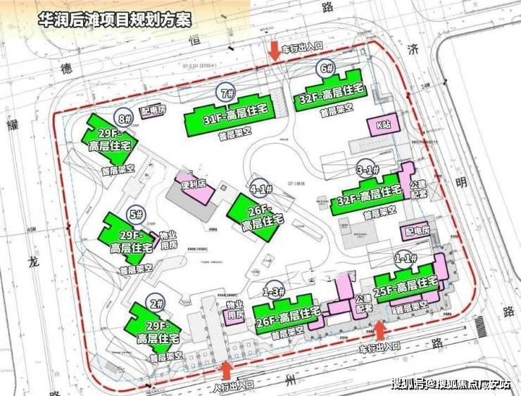 04-1地块住宅下限为1010套,限高80米。同样有40%中小套型要求,100%全装修,无租赁用房/保障房。占地面积4.19万㎡,容积率2.9。规划高层住宅,中高区可瞰黄浦江景。