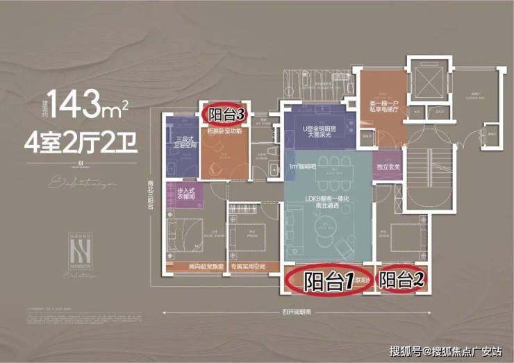 建面约143平四房阳台附赠更大、门口的私家电梯厅预测能有9-9.5个平方的附赠;如果都加在一起,实得率超92%,实际可利用面积超过132平!