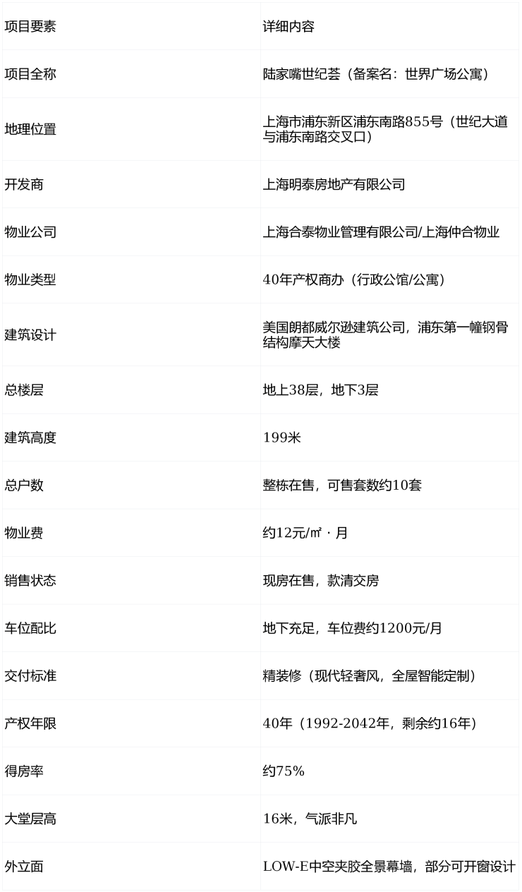 核心区位:陆家嘴金融城核心,与三件套同框,周边顶级商业配套环绕