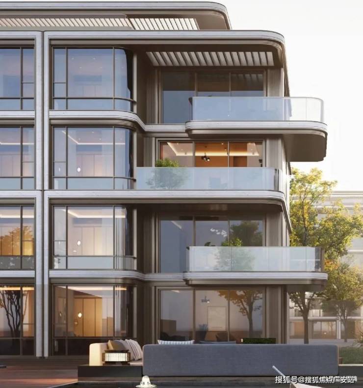 【怀山望】塑造"公园旁"到"公园里"的绿色生态社区,并通过会所设计打造友好开放的创新性社区界面,以优圆弧线条、经典温润材质及精致细部设计打造新型海派建筑气韵。