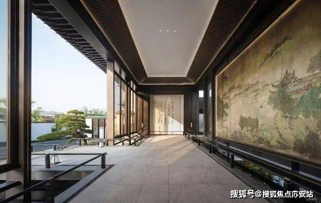 用现代材质转译的斗拱、鸱尾、雀替、直棂窗、屏风等建筑构件,在保留屋身唐风的基础上,减去复杂装饰,整体通透舒展,更符合江南气质的当代审美。