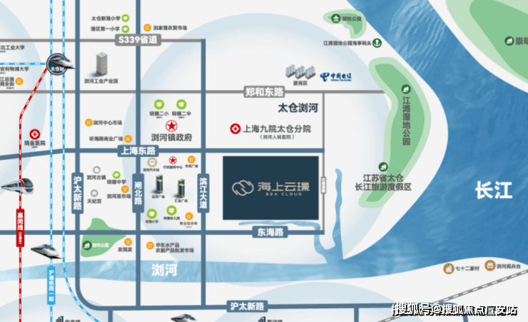 华发海上云璟是由太仓市资产经营集团有限公司(国企)与华发股份联合开发的品质住宅项目,位于太仓浏河镇郑和大街与经四路交汇处(子泾路188号),浏河人民医院斜对面。项目总占地约6.34万㎡,总建筑面积19.71万㎡,容积率2.20,绿化率37%-37.8%,规划14栋16-26层高层住宅及2栋商业配套,共1371户,车位配比1:1.35(共1844个)