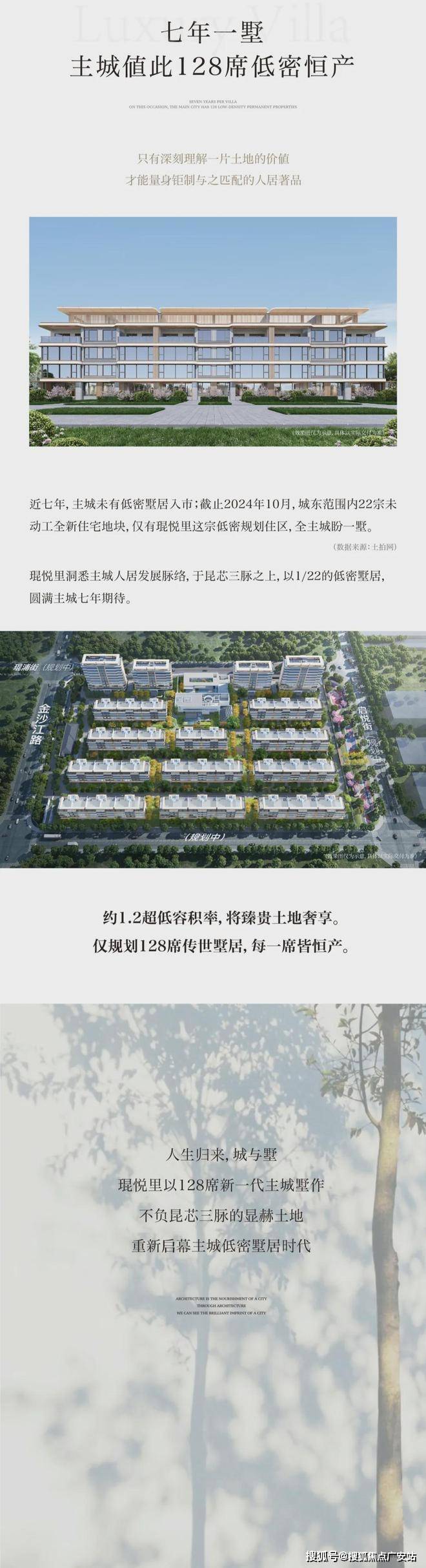 规模:占地约3.4万㎡,总建面6.8万㎡,容积率仅1.2(主城稀缺低密墅区),绿化率30%