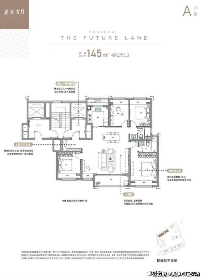3、建面约145㎡4房:奢阔横厅,定制多元生活场景