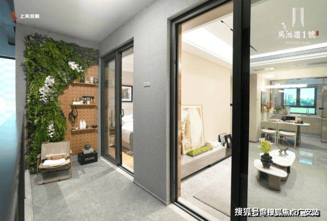 另外,市场上常见单入户门厅,而吴淞道1號采用地上地下双精装入户门厅,质感岩板一体铺就。