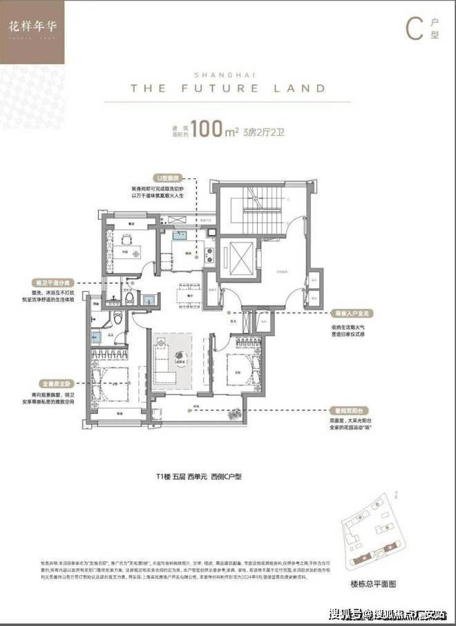 1、建面约100㎡3房:飞机户型,实用与舒适兼得