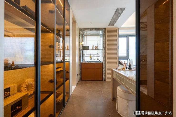 过道的空间也得以充分利用,一整面的过道柜,可作为各类消耗品的收纳中心,如果你是一个爱购物、收藏的业主,在这里,双十一囤再多货也都能放下。