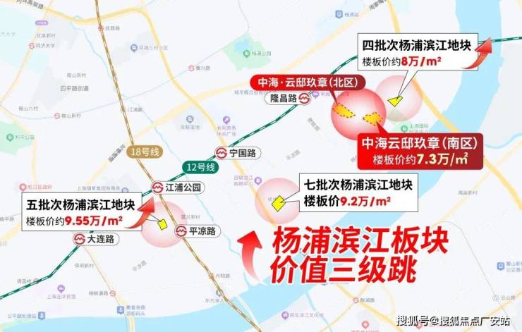 杨浦滨江也不例外,从中海云邸玖章入市至今,杨浦滨江的土地价值已经经历了三级跳。