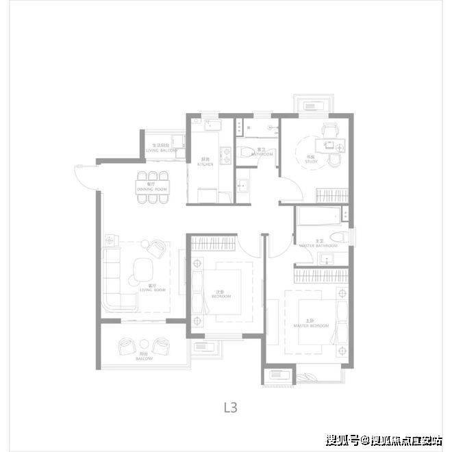 户型设计:有 90㎡两房两厅一卫、98/99㎡三房两厅一卫、116/125㎡三房两厅两卫等户型,得房率 75%-80%。其中 98㎡三房户型设计方正,南北通透,采用双阳台设计,客餐厅无缝连接。