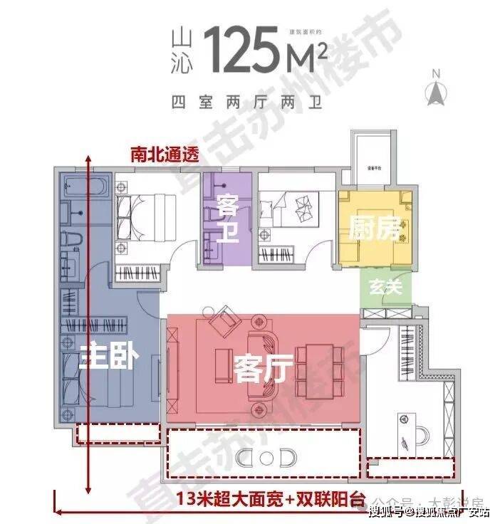 ❷在售面积:125㎡改善大四房,