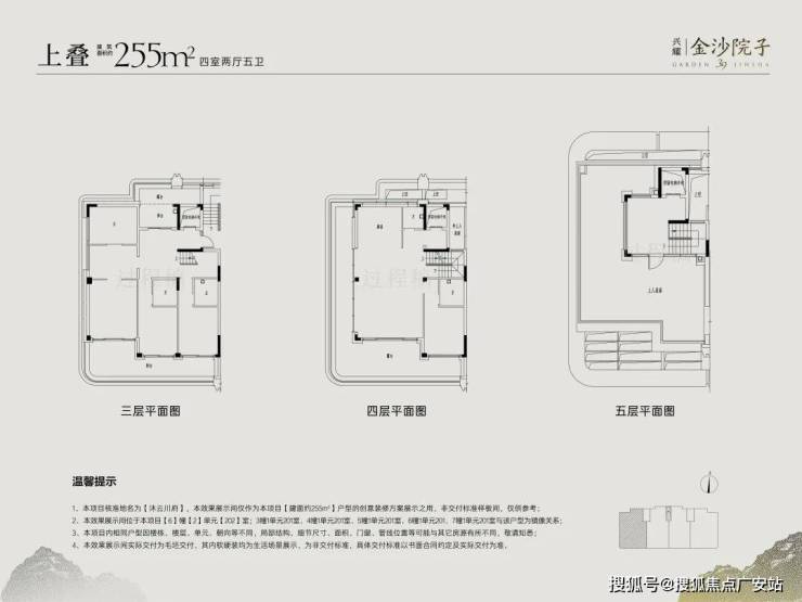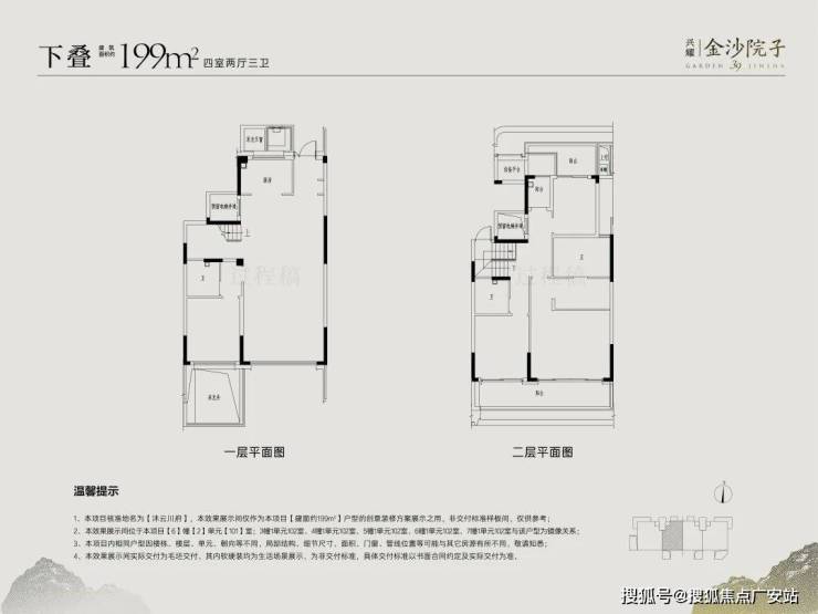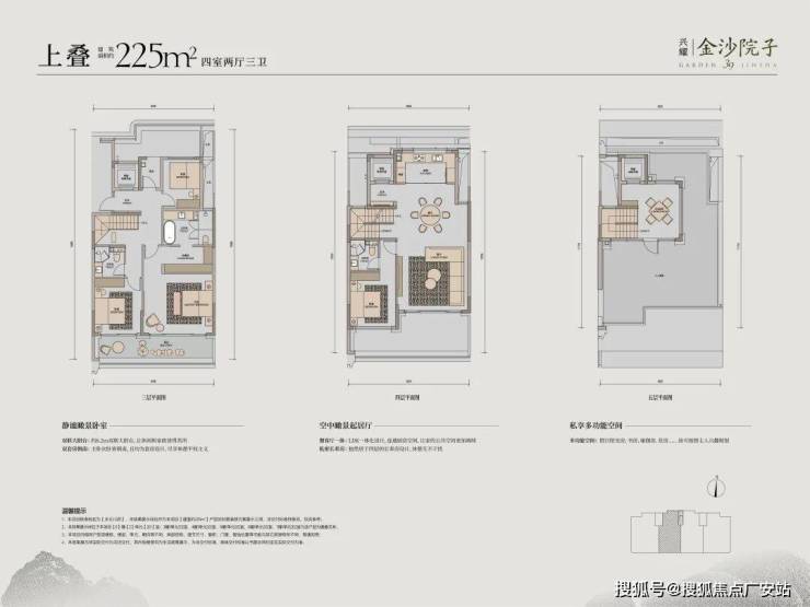 项目所在地块容积率仅为2.5,天生承载“高低配”。高层户型建面约96-145㎡;叠墅户型建面约199-255㎡。金沙院子——兴耀首个超级院墅,上下双叠。上叠面积255方,下叠约245方,最小花园115方。