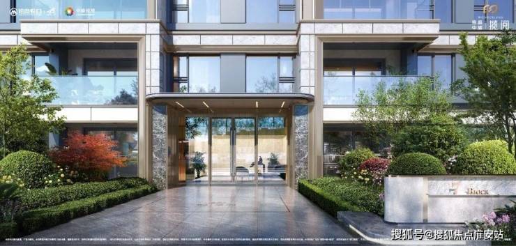 同时,在入户大厅的外墙上也采用香槟金铝型材与灰色石材,门头雨棚采用香槟金色弧形铝板装饰,搭配大玻璃面,这个颜值和尊贵感,在这个价位段十分难得。