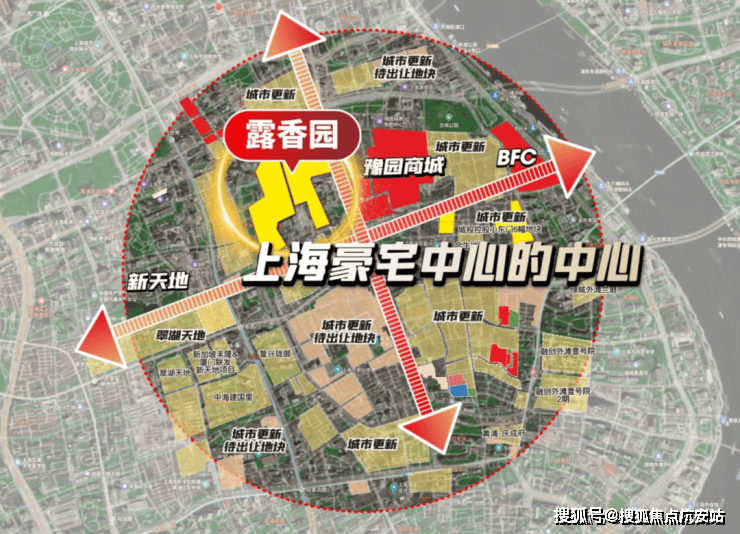当这些更新项目连成一片,露香园恰好处在 “十字轴心”,是上海豪宅中心的中心。