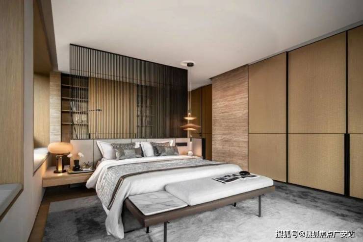 次卧的色调相对更为深邃,设计师通过不同的色彩选择,为静谧的氛围赋予了别样的诠释。有的空间明亮温暖,有的则内敛深沉,各种高品质材料相互搭配,编织出柔软而舒适的触感,再辅以恰到好处的艺术装饰,将空间的高级感提升到新的高度。