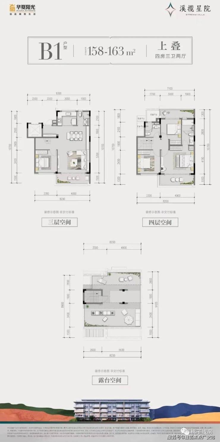 建面约158~163㎡上叠:顶层景观阳台/餐客一体连厅/套房式主卧/舒奢三卫设计