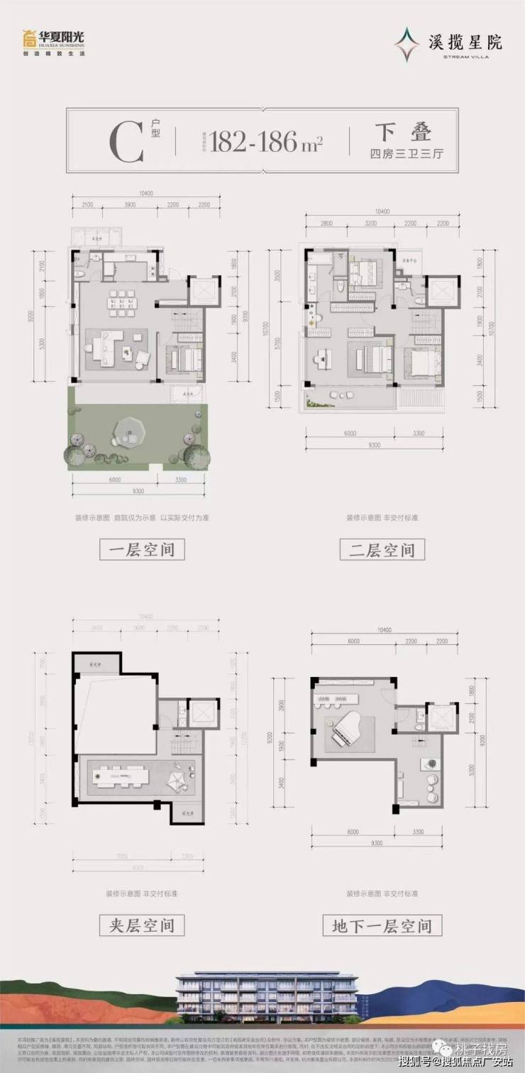 建面约182~186㎡下叠:多功能地下室/约6m瞰景阳台/豪华主卧套房/父母阳光房