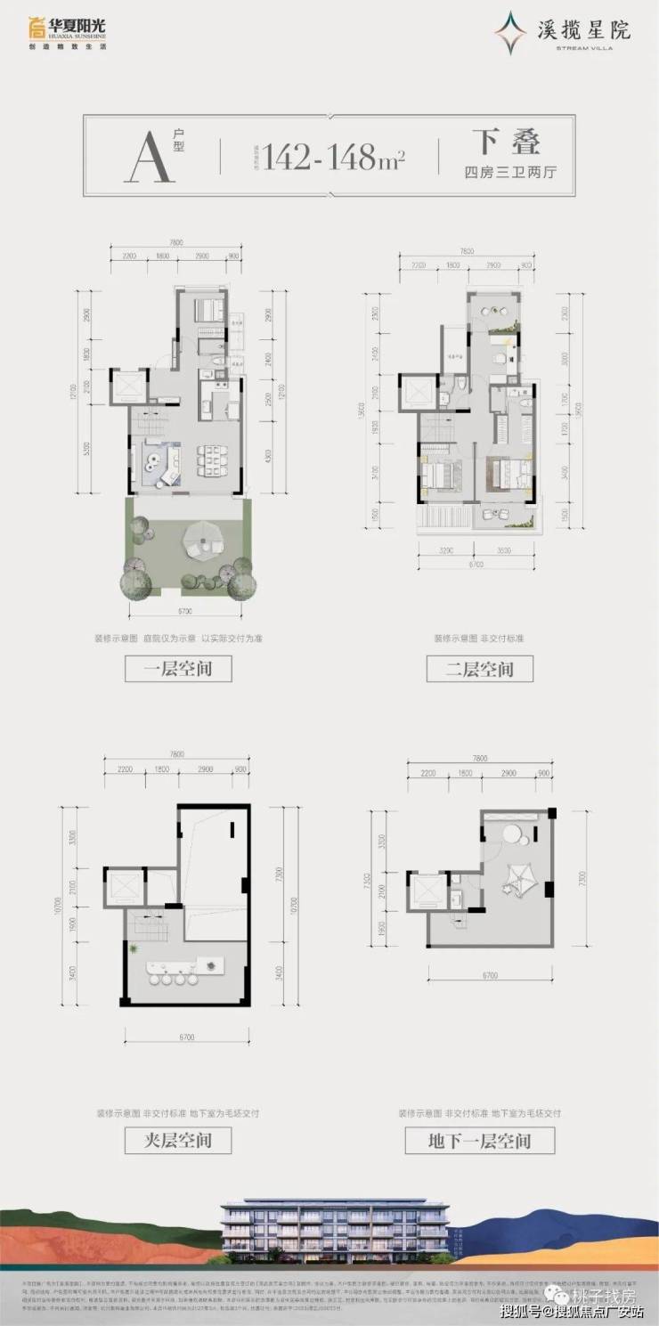 建面约142~148㎡下叠:地下室多元空间营造/餐客连厅/奢适双卧/南向阔景阳台