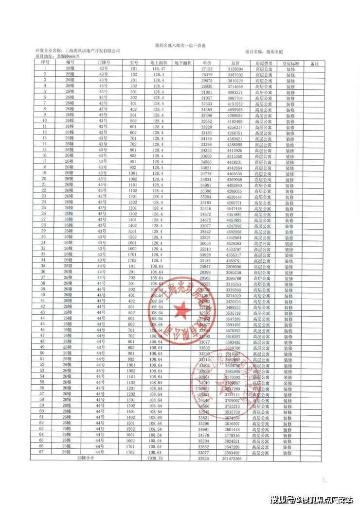 一房一价表: