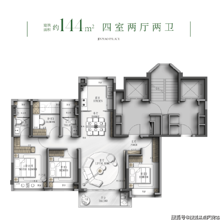 推售建面约114-126-144-190m²3-4房,