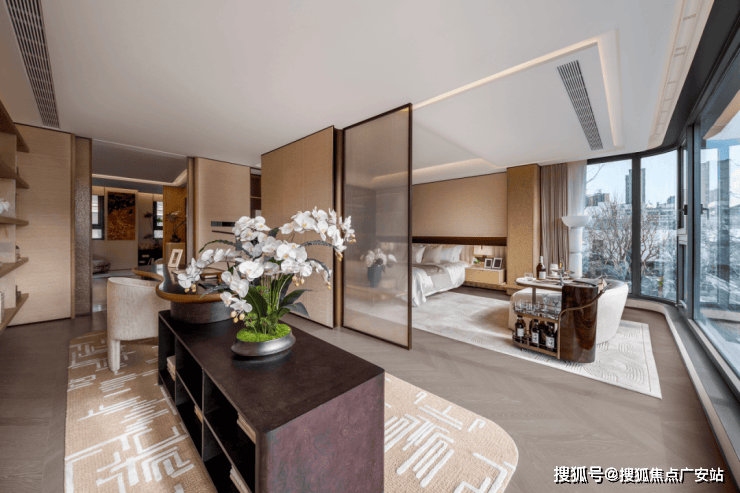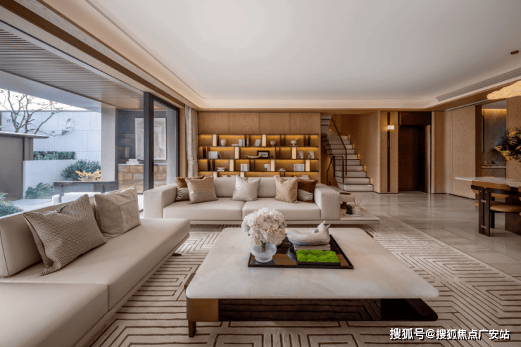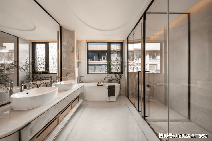 南向外立面采用大面积落地窗 + 湾流曲线设计,搭配雅淡浅色系石材,营造轻盈通透的现代感 。