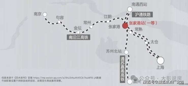 高铁枢纽:张家港站(直线距离约3.5公里),1小时长三角通勤圈,深度融入上海“半小时经济圈”;