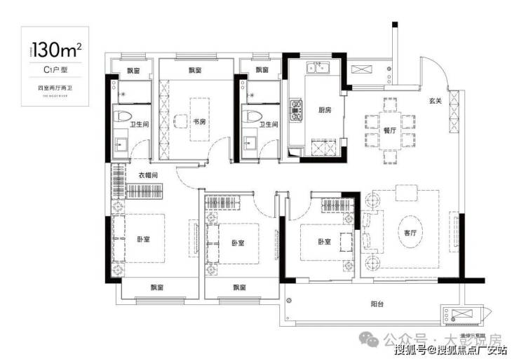 科学布局:打破空间限制,起居厅与餐厨极尽铺展,户型科学布局,超高窗墙比,室外配置宽幕观景阳台。