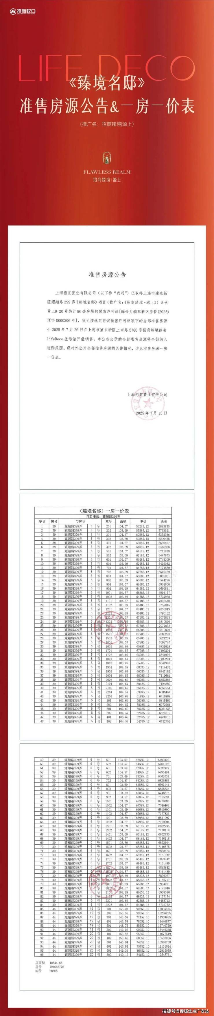好消息,浦东三林 总价581万起 三阳台王炸产品【招商臻境】加推建面约95-150㎡公寓&叠墅!均价69657元/㎡!一房一价首发!