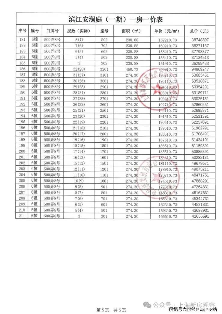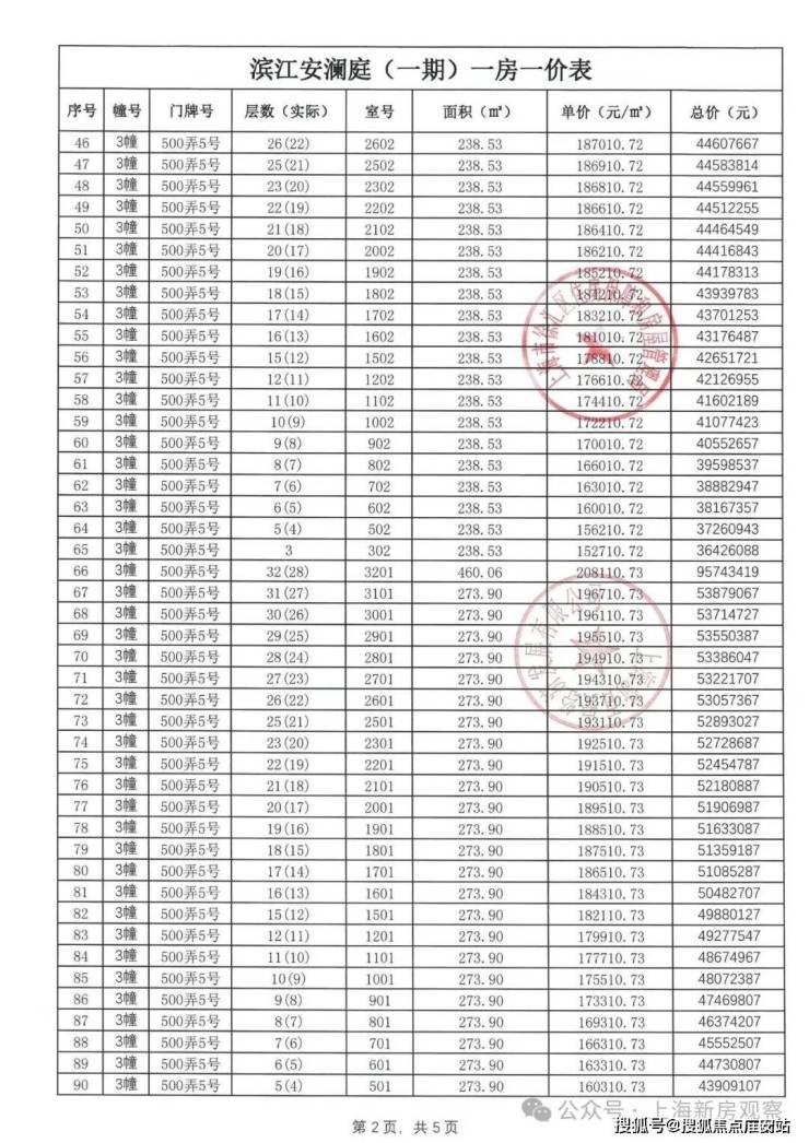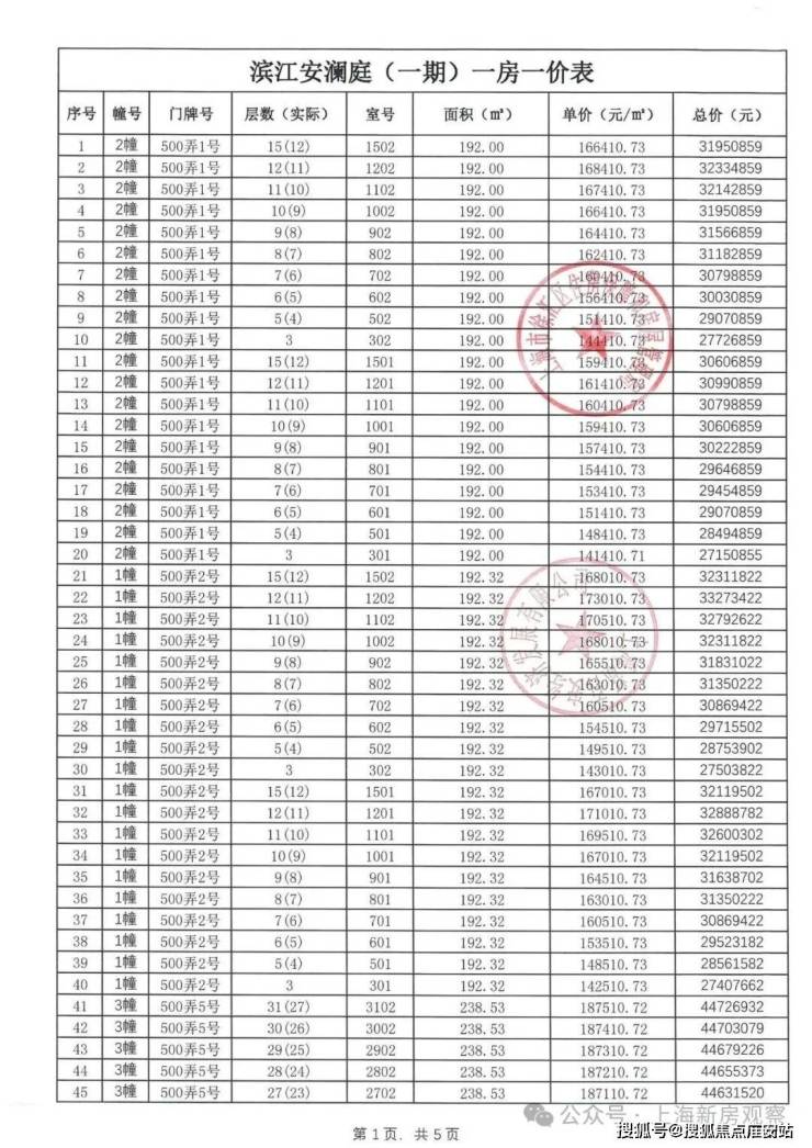 一房一价表如下:
