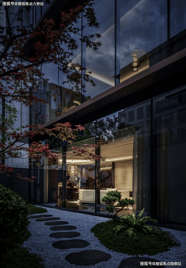 空间设计上,绿城·六十七象展现出对生活场景的深刻理解。项目最大面宽达约26米,南向玻璃窗墙比约65%,远超市场主流豪宅50%的水平。这一设计极大提升了室内的通透度和采光幅度,让居住者在卧室和客厅就能欣赏庭院景观。