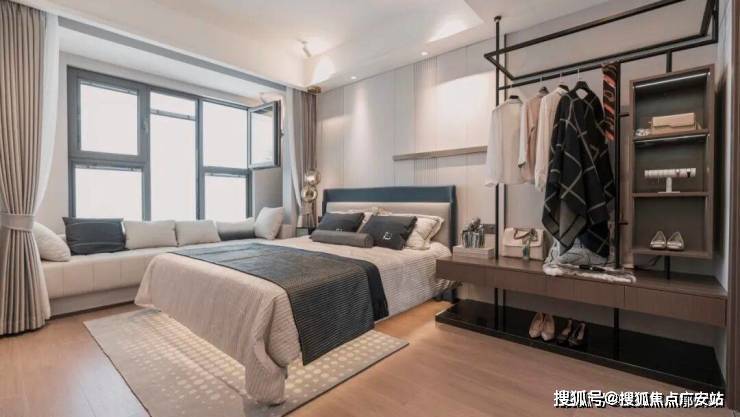 主卧 面宽约3.2米,南北双飘窗,自带独立衣帽间,主卫更有浴缸设计,完完全全俘获了购房者的心。