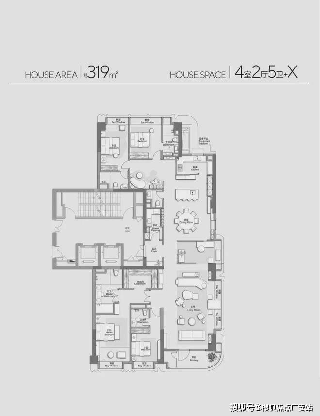 ▼ 建面约319㎡4房2厅5卫